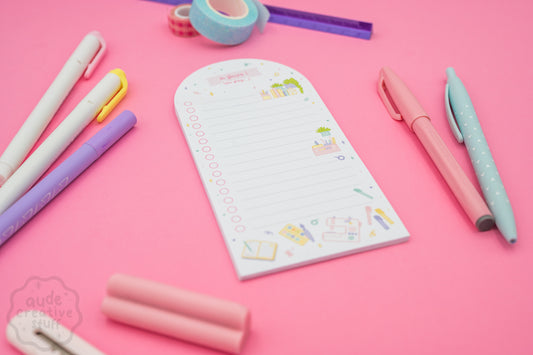 Bloc-notes To-do List Thème Activités Créatives, en forme d'arche 8x17 cm, 25 feuilles