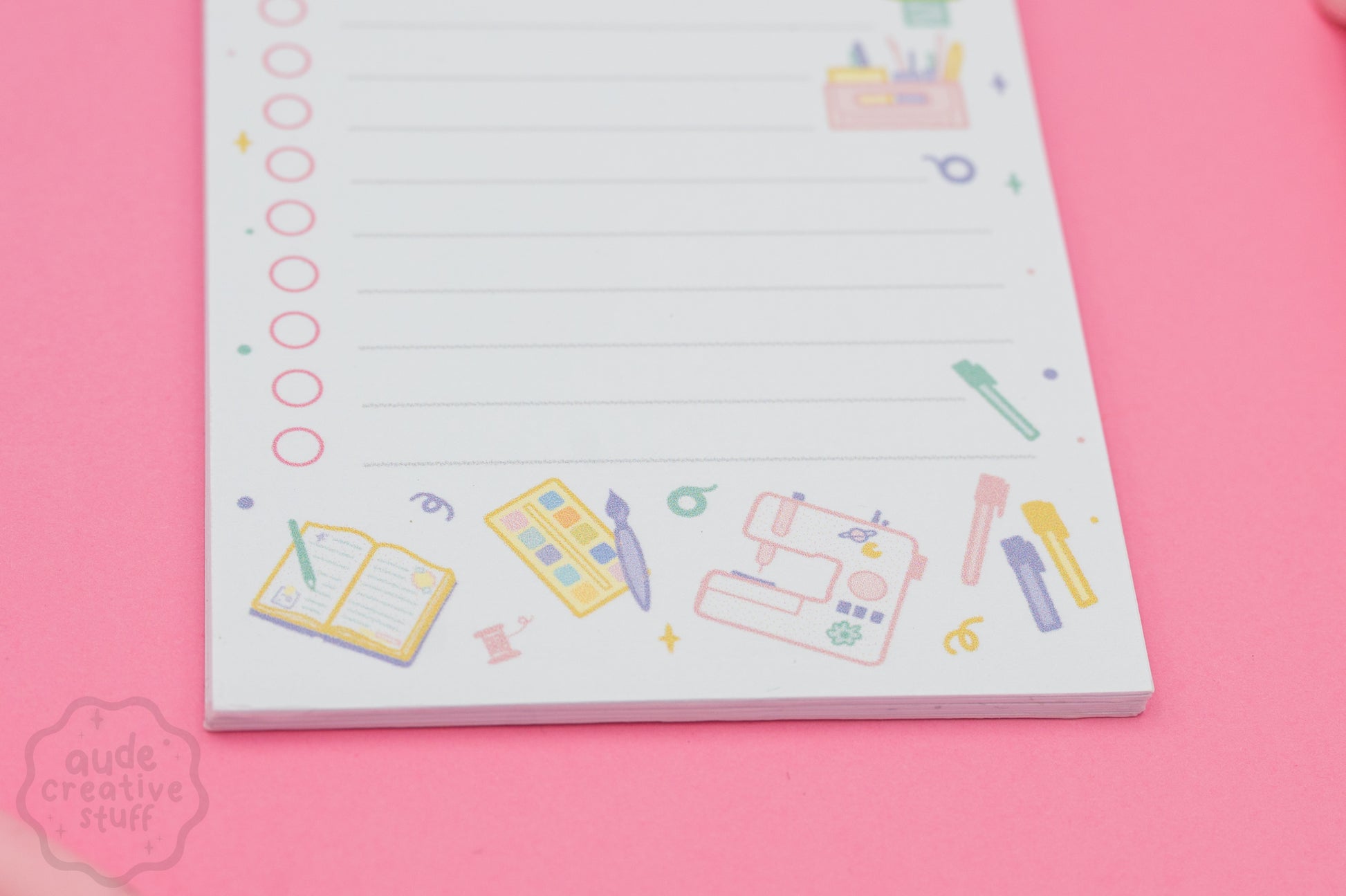 Bloc-notes To-do List Thème Activités Créatives, en forme d'arche 8x17 cm, 25 feuilles